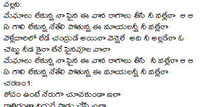 Meghalu Lekunna Song Lyrics - Meghalu lekunna naa paina ee vaana raagaalu theese nee vallena a gaali lekunna ne teli pot.