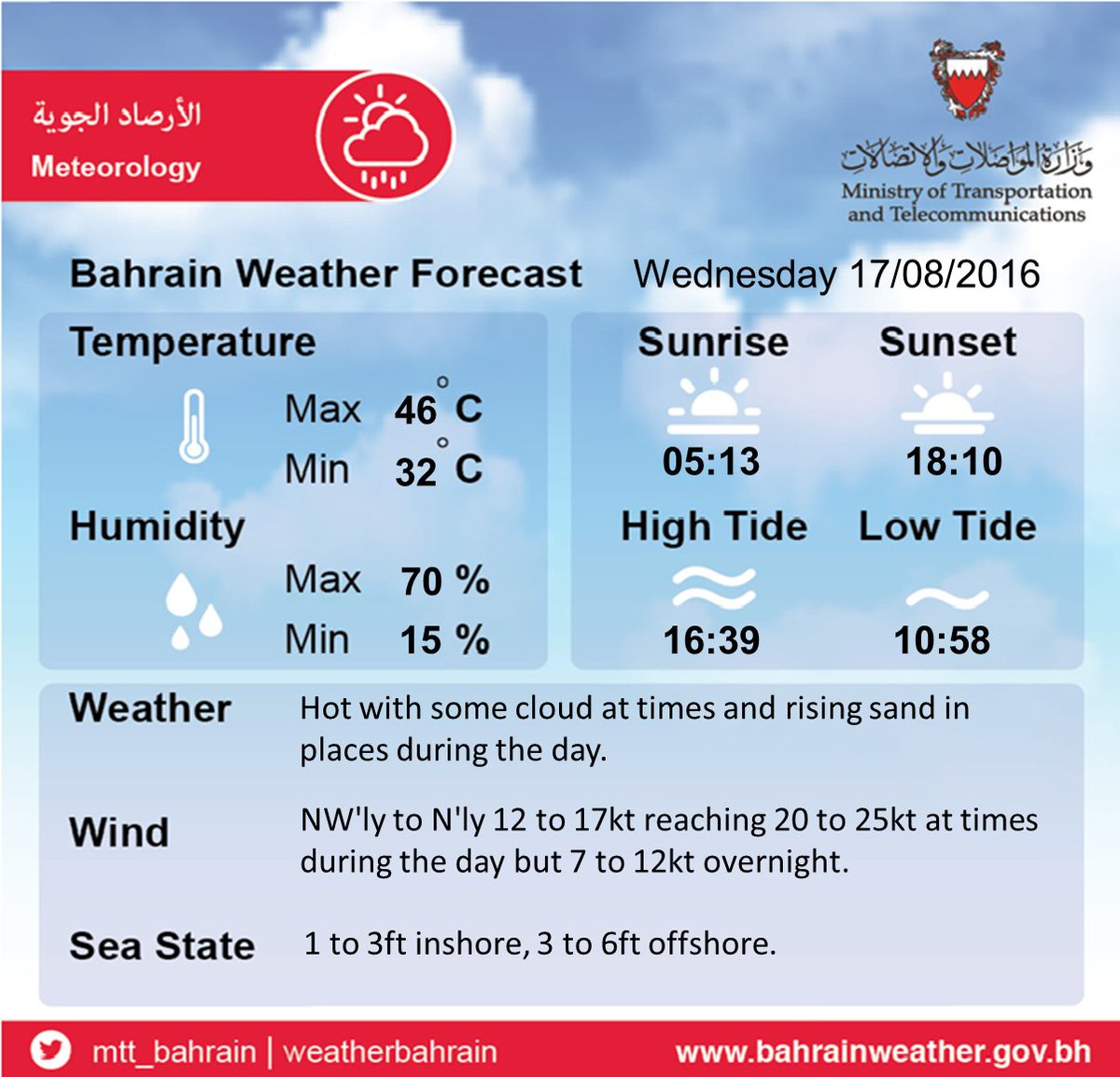Temperature In Bahrain - ☼ time of sunrise and sunset.